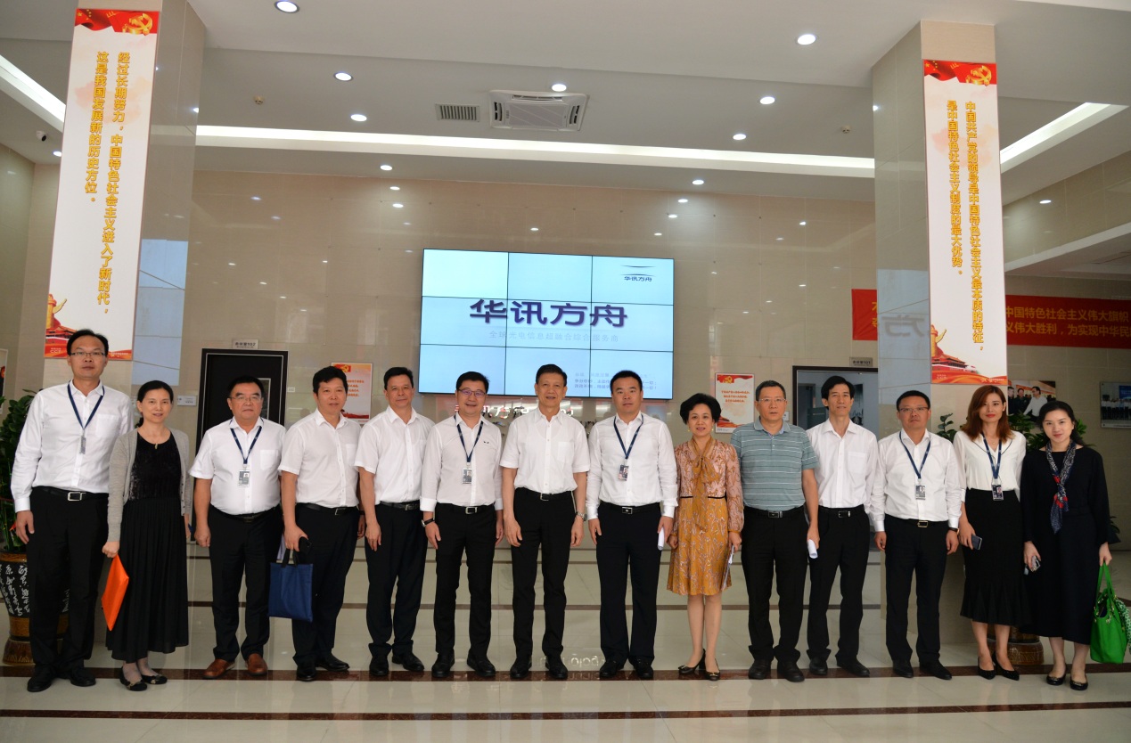 8月14日,為貫徹落實“不忘初心,牢記使命”主題教育精神,深圳市委常委、常務副市長、黨組副書記劉慶生率隊赴華訊方舟集團總部調研。集團董事長吳光勝、首席執(zhí)行官范虎、高級副總裁丁慶、副總裁吳曉光等領導出面接待并座談。